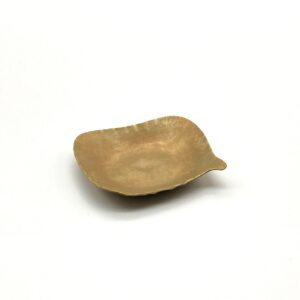 主に自然のモチーフからインスピレーションを得て作られた真鍮作品。そのためか、一般的にクールなイメージがある真鍮でもやわらかい雰囲気をまとい、日常へ取り入れやすい点が田中さんの特長です。空気中の硫黄ガスに反応して黄土色へ経年変化するのも「うつわを育てる」楽しみのひとつ。真鍮アイテムがひとつあるだけで食卓が引き締まります。